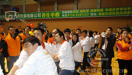 2014年4月24日由恩施州總工會組織的慶“五一”州直職工撥河賽在州體育館舉行,共有來自州直機關及企事業單位共59支代表隊參賽。
