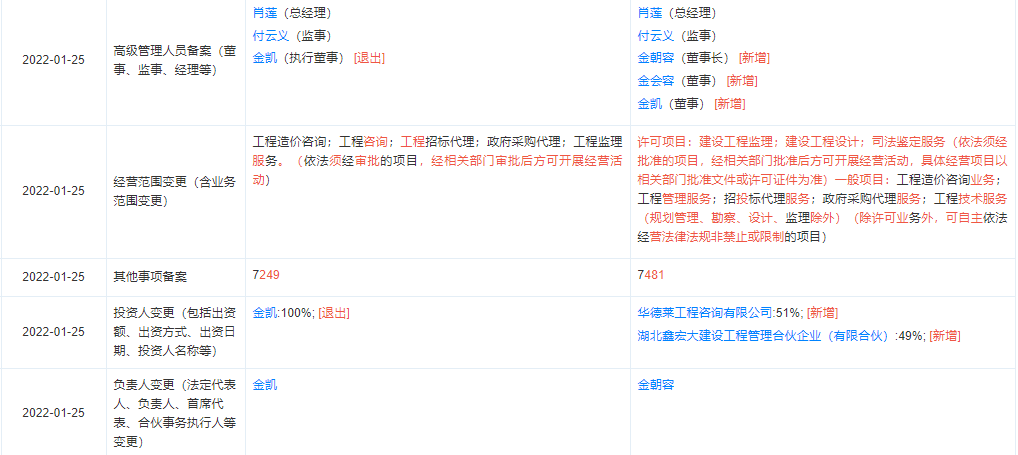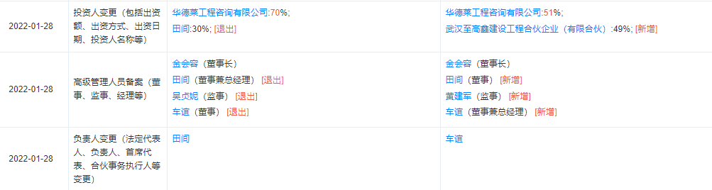相繼完成相關的設計監理造價公司工商股權變更如下: