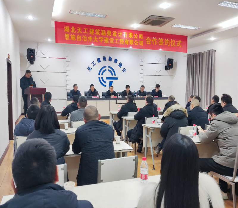 2024年1月18日(農歷臘月初八)下午,湖北天工建筑勘察設計有限公司與恩施自治州大宇建設有限公司合作簽約儀式在恩施市清江東路2號“天工設計”五樓會議室舉行。恩施州住建局黨組成員、副局長袁燕奇,恩施州住建局黨組成員、總工胡平,恩施職業技術學院建筑工程學院院長雷元凱,恩施州建筑業協會會長王保榮等領導出席了會議。湖北天工建筑勘察設計有限公司及恩施自治州大宇建設公司相關負責人及社會各界人士參加了會議。