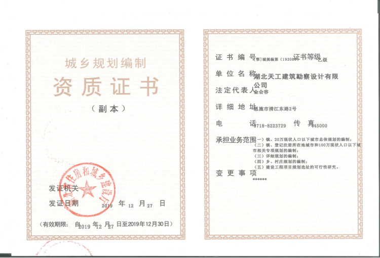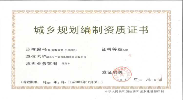 喜訊:天工設(shè)計取得城鄉(xiāng)規(guī)劃編制乙級資質(zhì)!